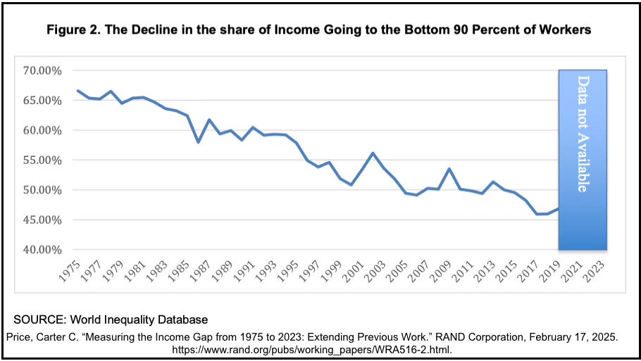 Price, Carter C. “Measuring the Income Gap from 1975 to 2023: Extending Previous Work.” RAND Corporation, February 17, 2025. https://www.rand.org/pubs/working_papers/WRA516-2.html. (available as a free download)