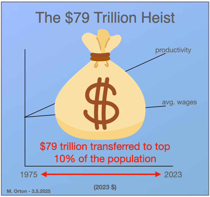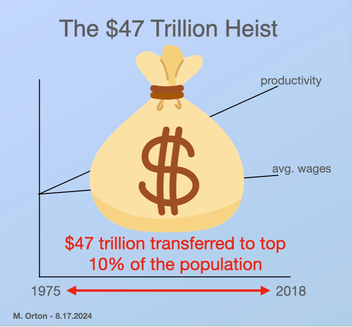I have written at length about the $47 trillion heist of income by the top 10% of the US population from 1975 to 2018.1 I even created a little graphic to accompany this tale.